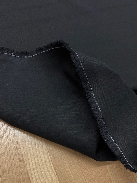 うっすらヘリンボーンに織られた、黒の綿ポリストレッチ。