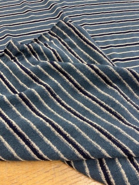 生地:ボーダー柄裏パイルニット(青系) [kiji-1462]