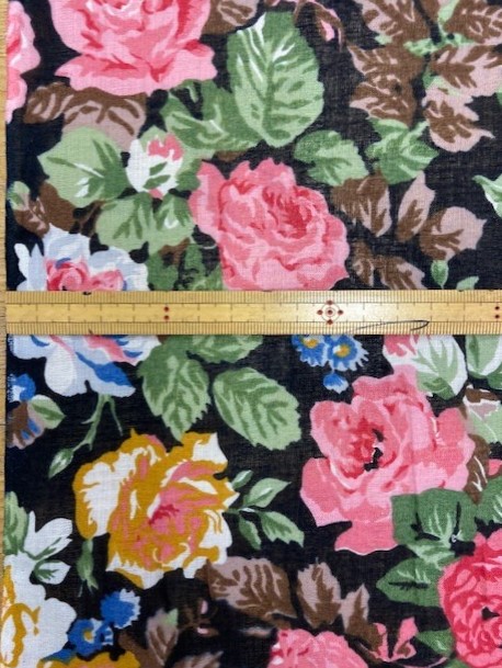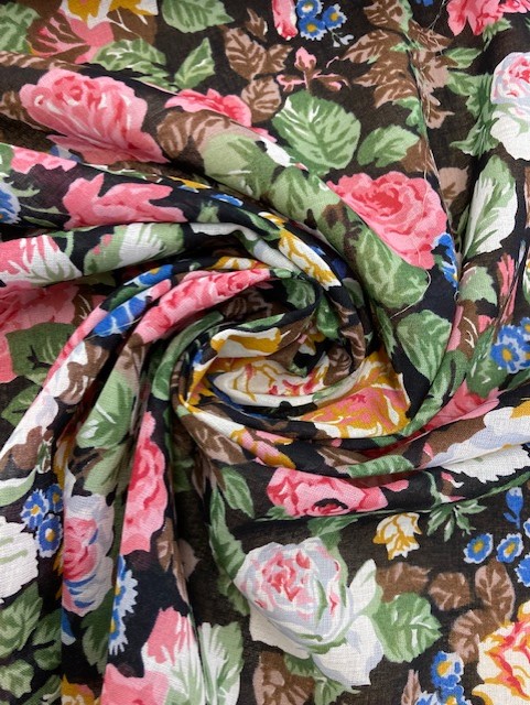黒色の地にピンク系の鮮やかな花柄プリント。