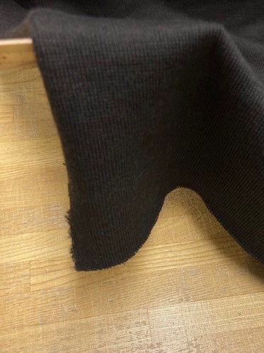 ざっくりしたリブ編みですが、裏がポリエステルでしっかりしているので、