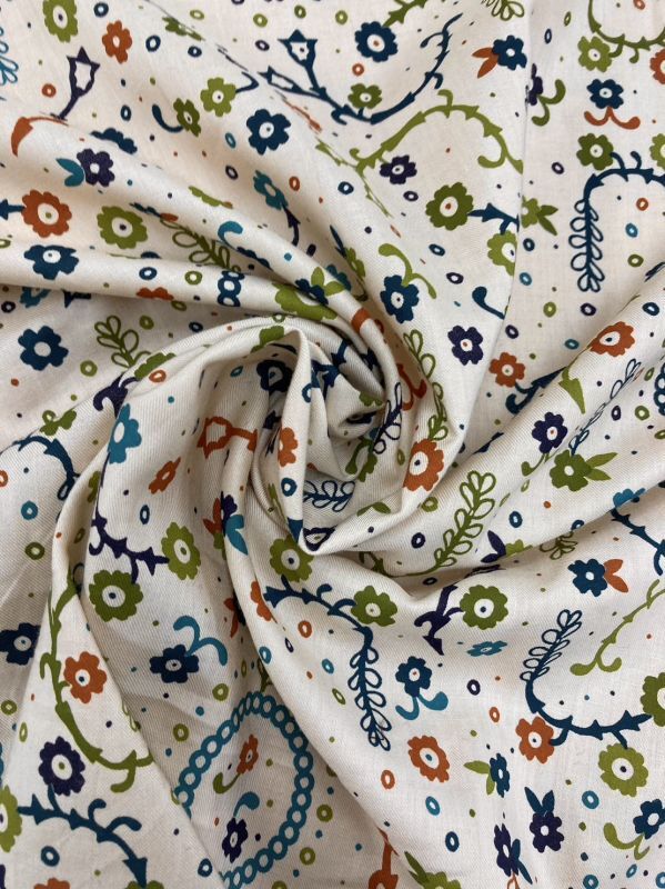 生地:リヨセル綿フラワープリント(クリーム) [kiji-1749]