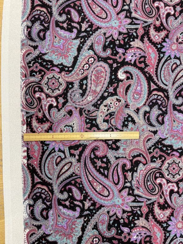 トリアセテートとポリエステルの大胆なペイズリープリントです。