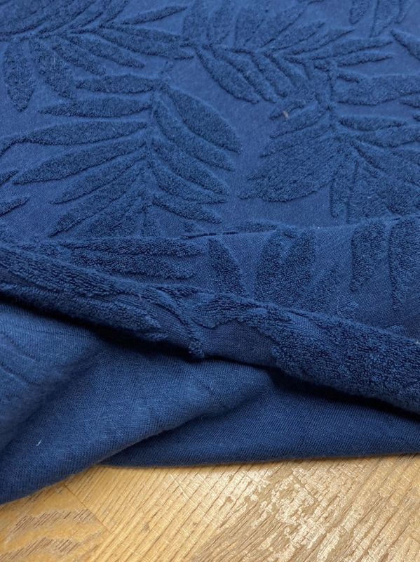 生地:葉っぱ柄綿パイルニット(紺)