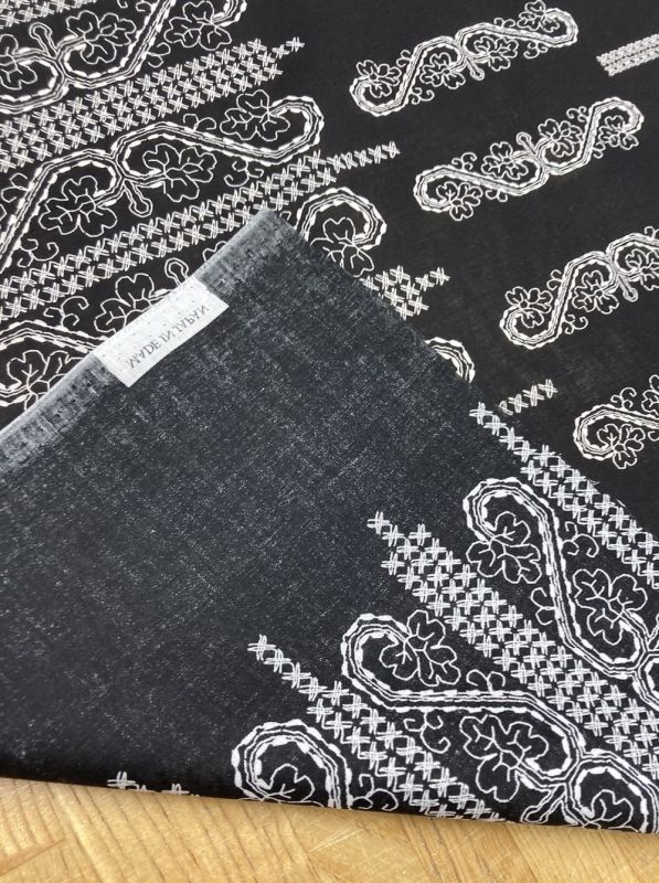 生地:ステッチ刺しゅう風プリント綿(黒/白)