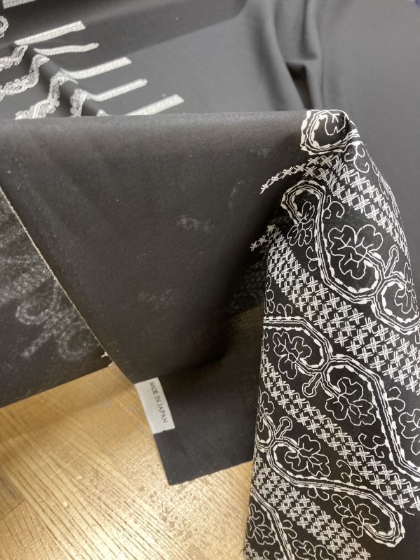 薄手のコットンに刺繍風のプリントが施されていて、ややハリがあります。