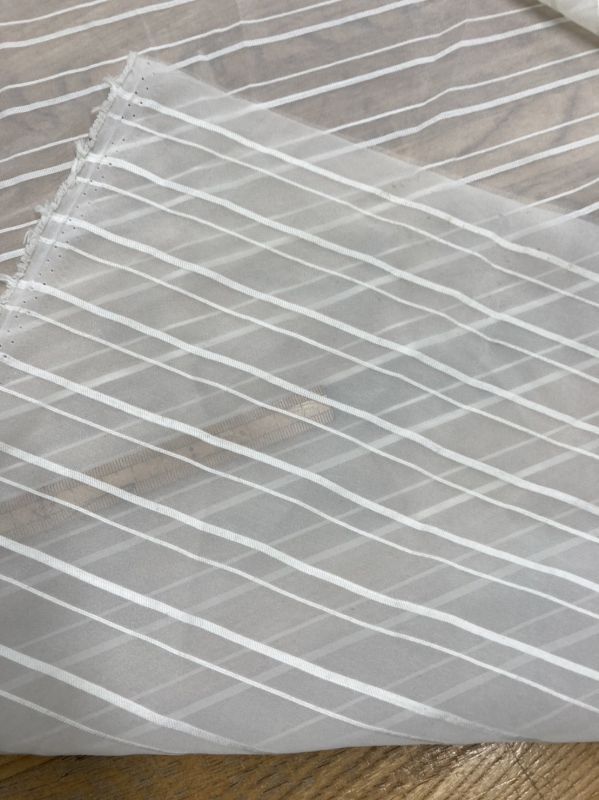 ボーダー模様の凹凸のある、ポリエステル100%のシアー生地。
