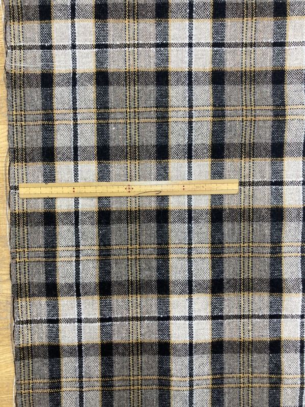 生地: タータンチェック柄ウールポリ(ベージュ/グレー黒黄)
