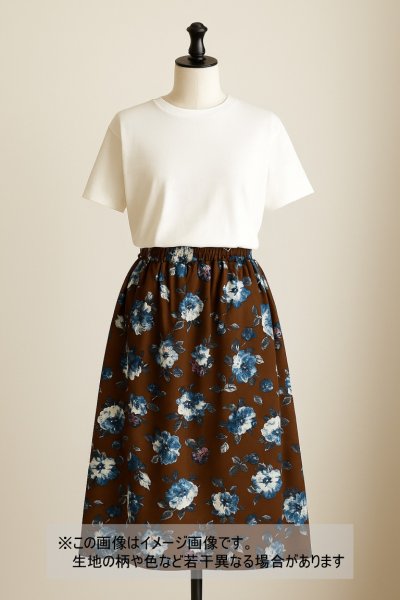 生地: ダブル幅ポリエステル花柄プリント(茶/青)