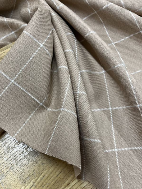 生地:ウールナイロンポリウレタン 格子柄(ベージュ/白) [kiji-2298]