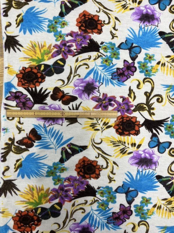 生地:ポリ100%表起毛花柄プリントニット(クリーム地) [kiji-2317]