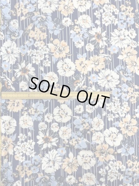生地:綿100%ローン花柄ストライププリント(青オレンジ) [kiji-2358]