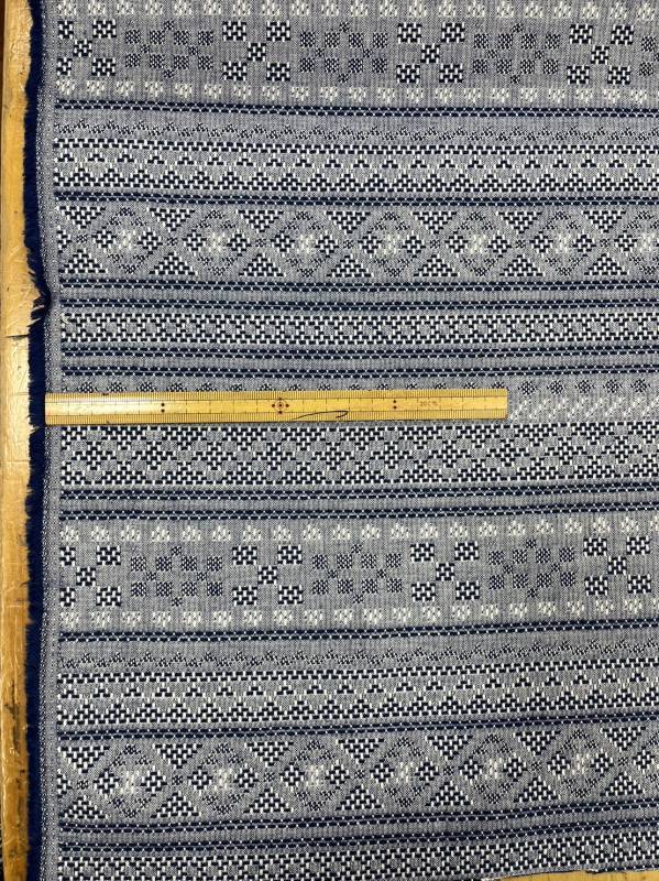 生地:綿100%ボーダー柄刺し子ジャガードエアタン仕上(紺/白) [kiji-2415]