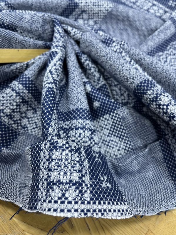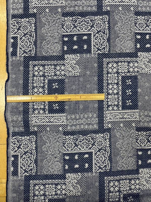 生地:綿100%レースパッチ柄刺し子ジャガードエアタン仕上(紺/白) [kiji-2417]