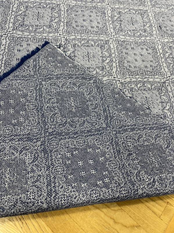 生地:綿100%バンダナ柄刺し子ジャガードエアタン仕上(紺/白)