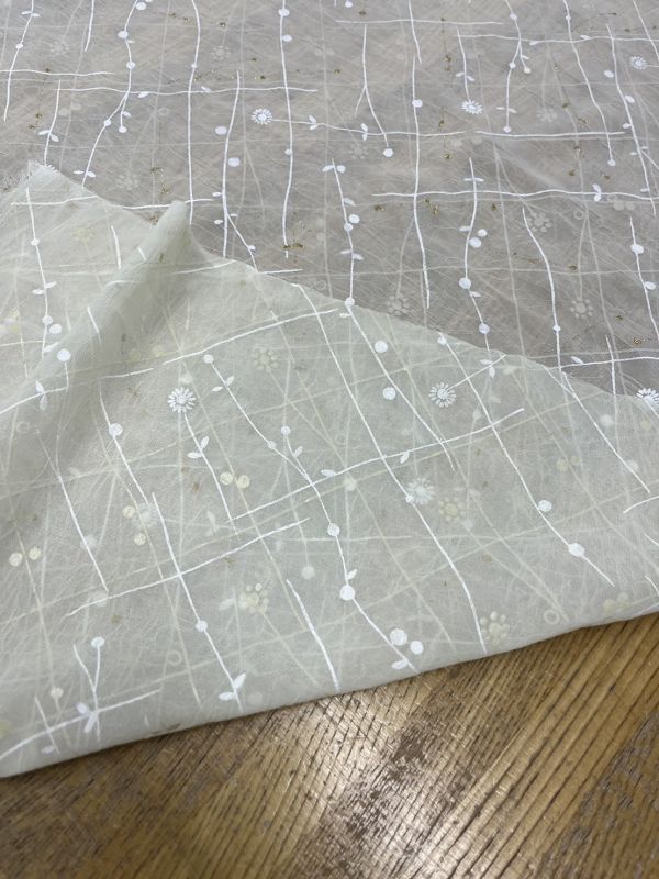生地:ポリエステル100%格子花柄シフォン(クリームイエロー) [kiji-2480]