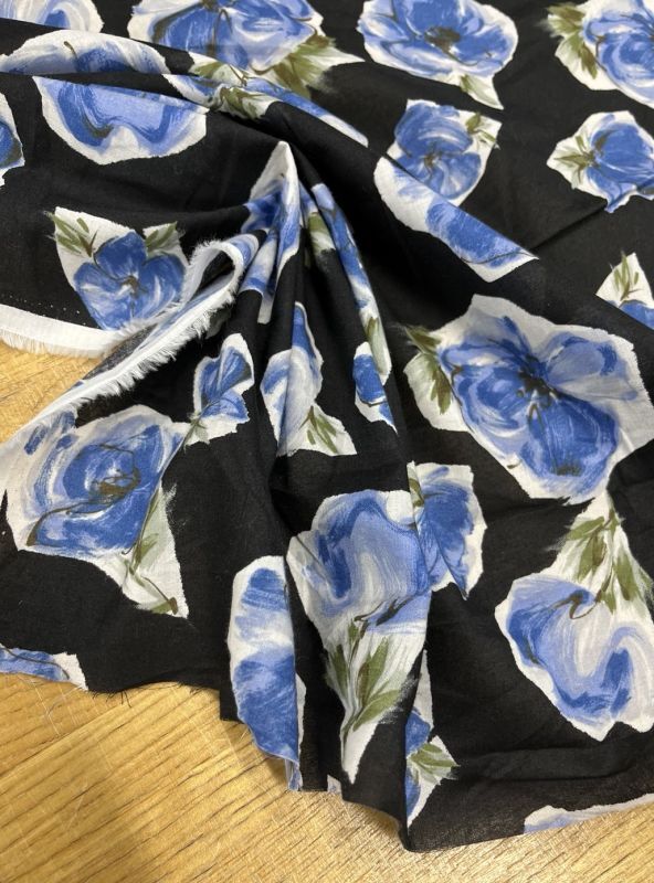 生地: 花柄プリント綿60ローン(黒/ブルー)
