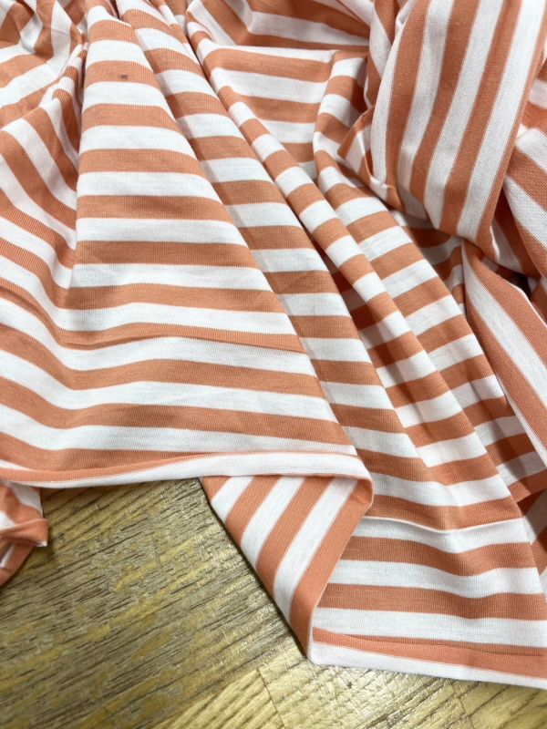 生地:綿100%ボーダー柄天竺ニット(キナリ/ピンク)