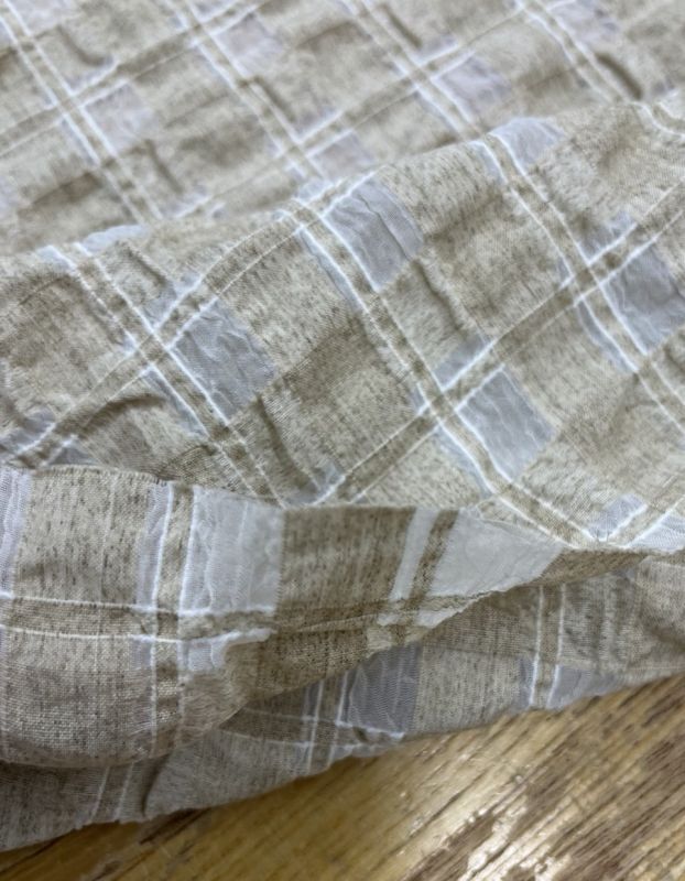 生地:綿キュプラ混格子柄リップル(ベージュ) [kiji-2573]