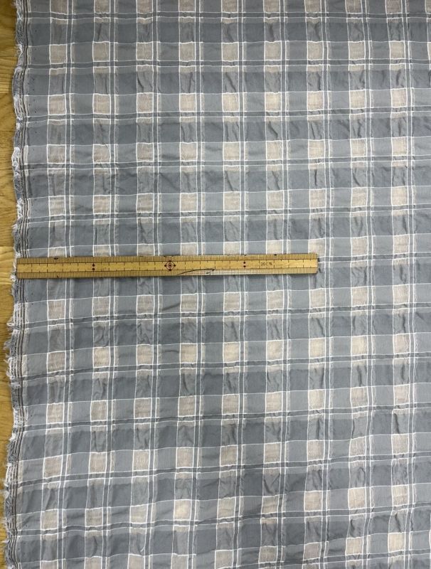 生地:綿キュプラ混格子柄リップル(グレー) [kiji-2574]