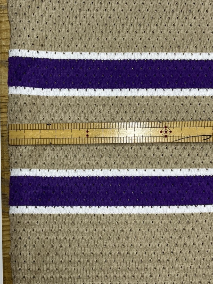 生地:綿100%太ボーダー穴あきニット(ベージュ/紫/白) [kiji-2598]