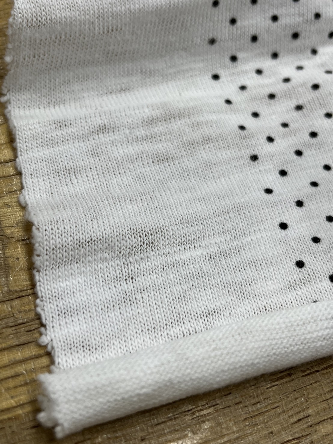 生地:綿100%水玉柄シャンブレー天竺ニット(白/黒)