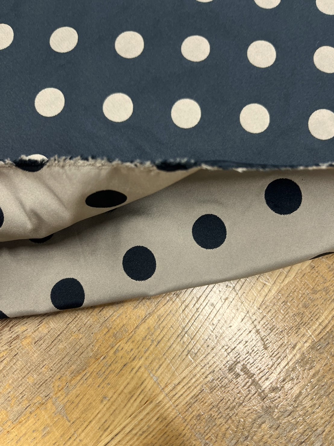 ポリエステル100%両面使える水玉のジャガード生地。
