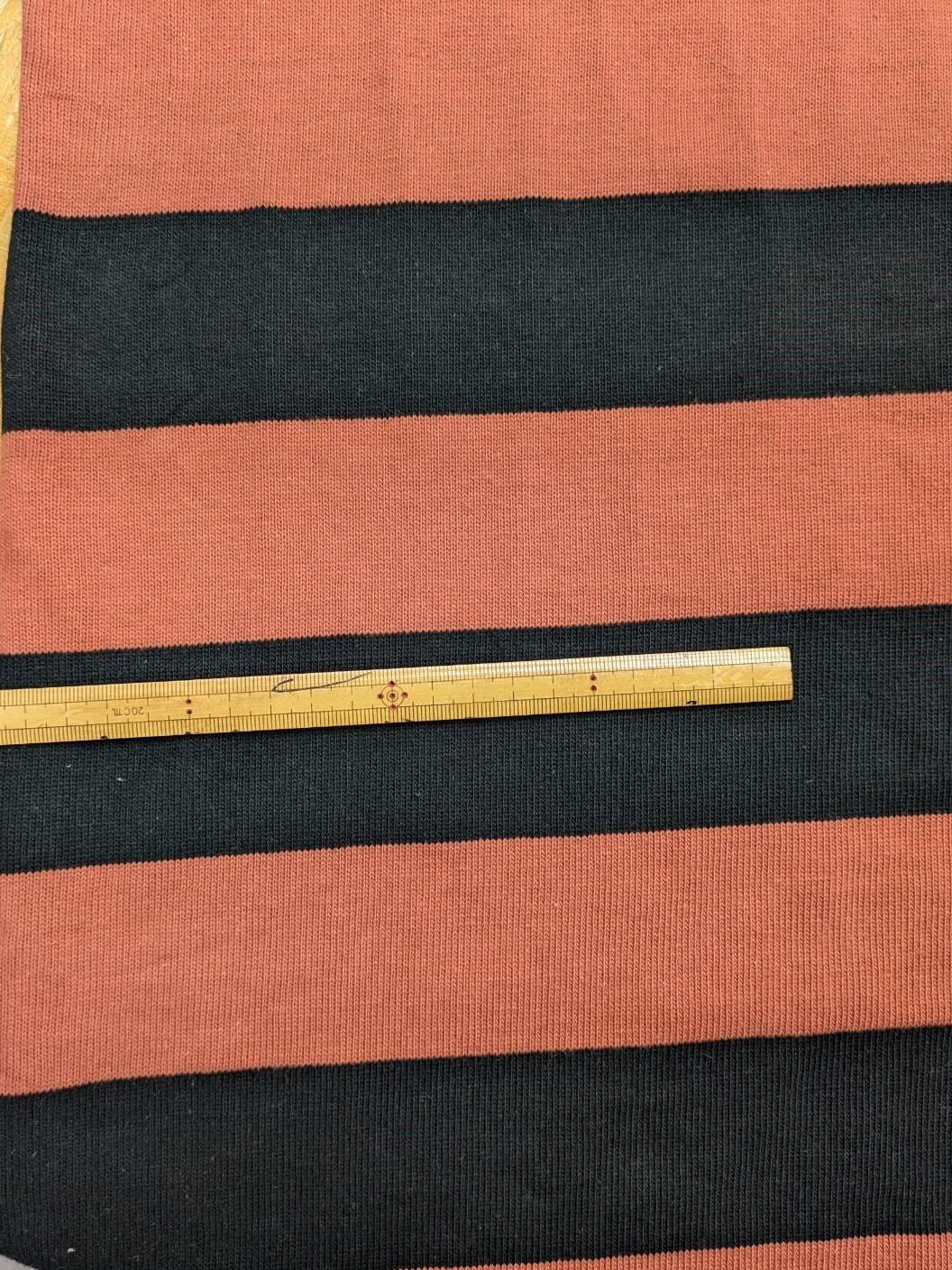 生地:綿100%厚手太ボーダー柄天竺ニット(コーラル/黒) [kiji-2617]