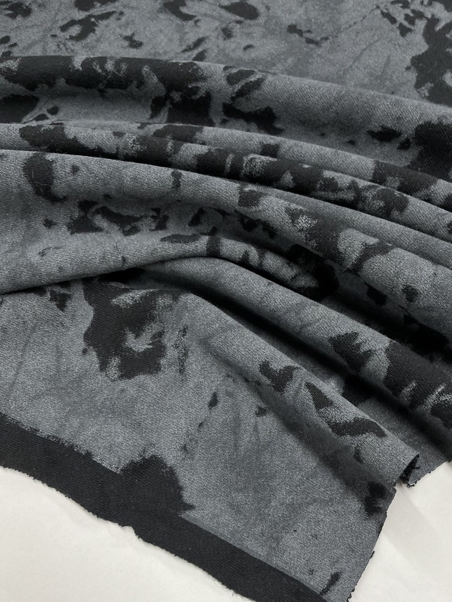 生地:石目柄プリント裏毛ニット(黒/グレー) [kiji-2636]