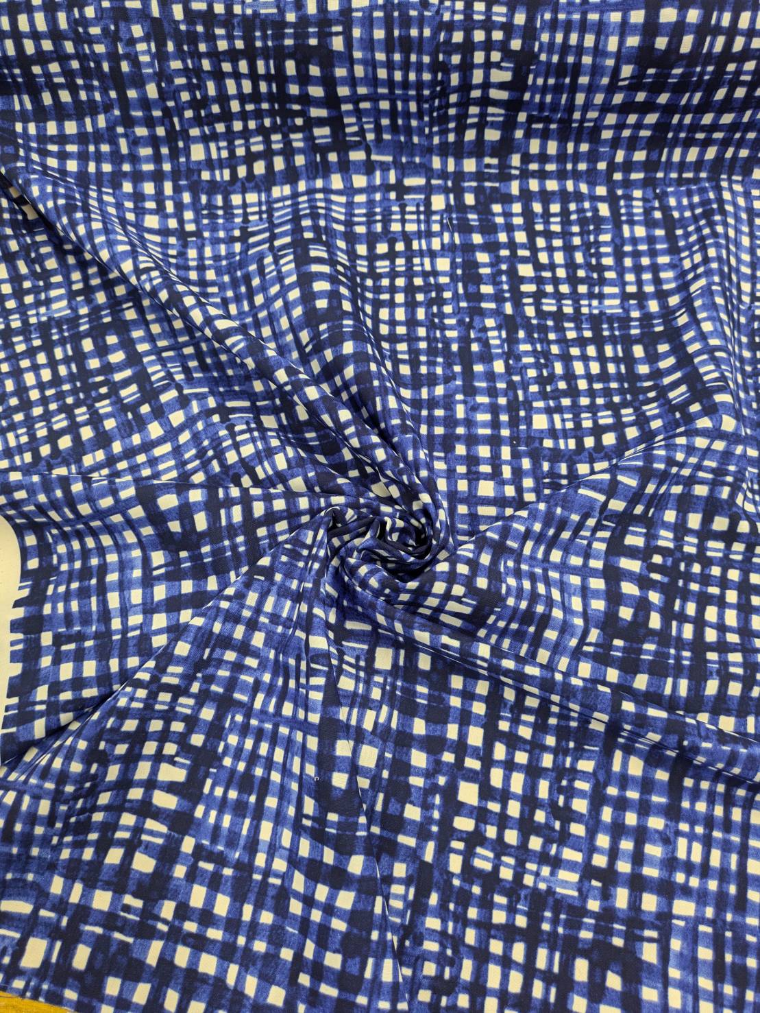 生地: 手書き風チェック柄ポリプリント(白/青)