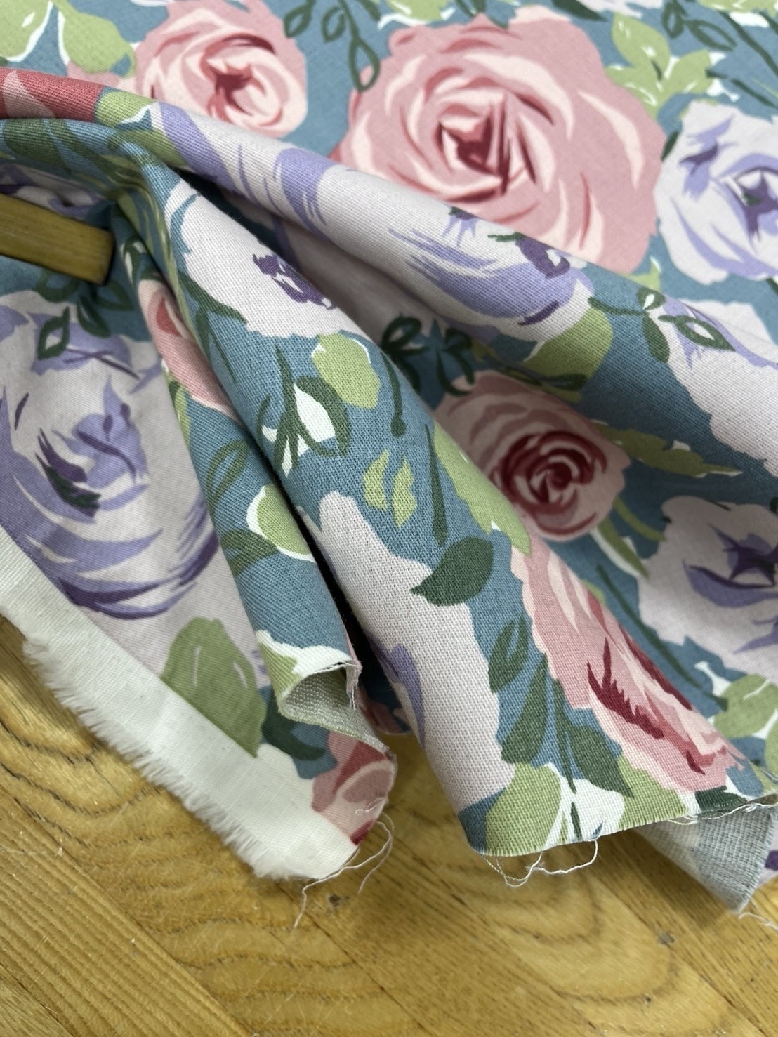 生地:綿100%薔薇柄コットンツイル(ブルーグリーン)