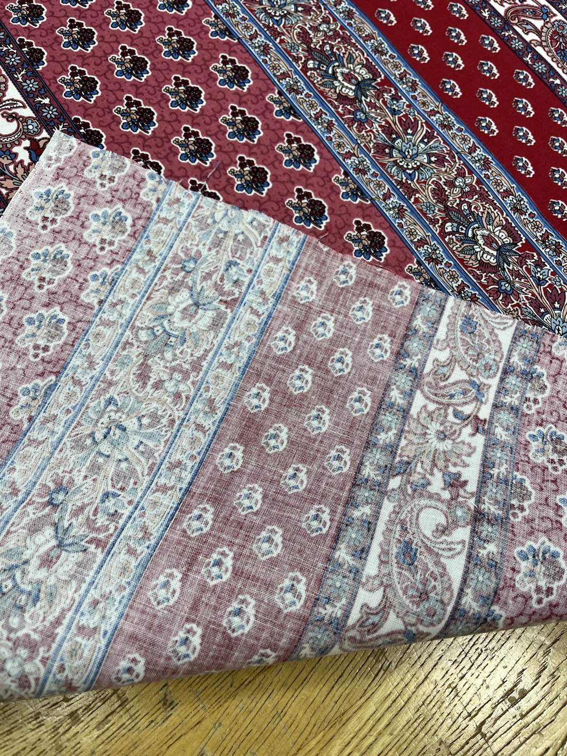 プリントのデザイン性と実用性を兼ね備えた生地で、プロヴァンス風の独特な雰囲気が楽しめます。