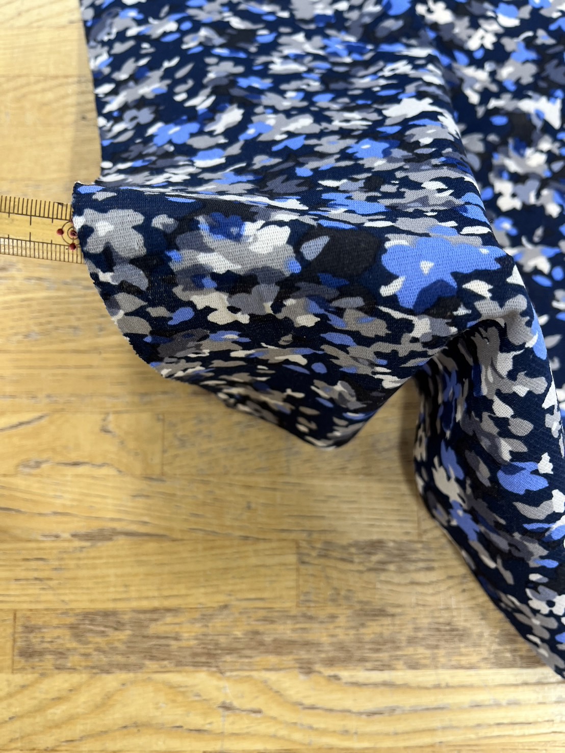 紺地に花柄のようなプリントが施された、上品で華やかなチュールニット生地です。