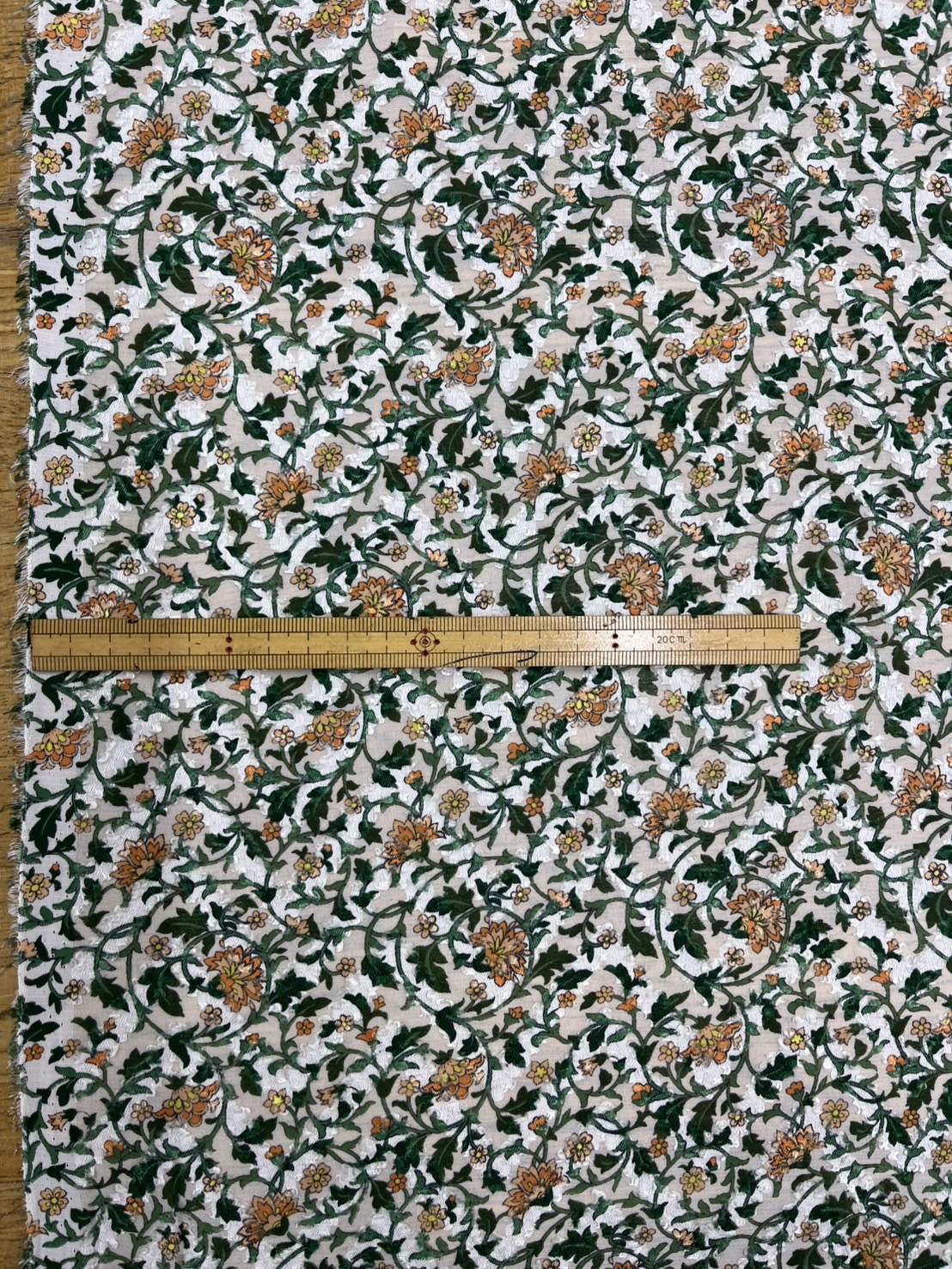 生地:ポリ100%小花柄カットジャカード(ホワイト×イエロー×グリーン) [kiji-2818]