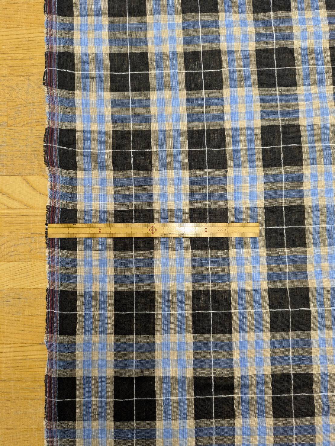 生地:麻100% チェック柄(黒/ベージュ/青) [kiji-2826]