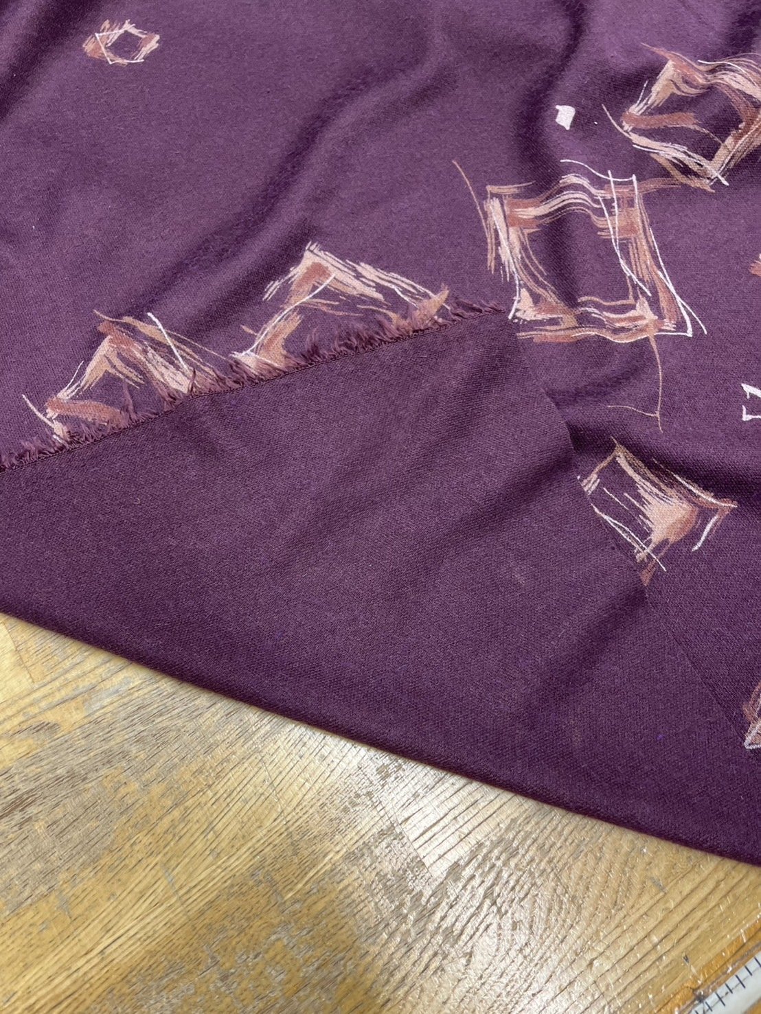 生地:ポリエステル100% スクエア柄手書き風プリントニット(エンジ) [kiji-2839]