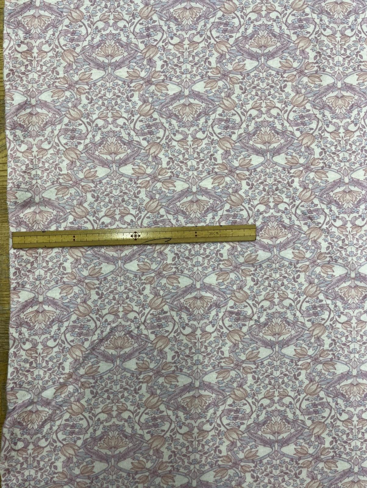 生地: 綿100% 花柄天竺ニット(オフホワイト×ピンクパープル)