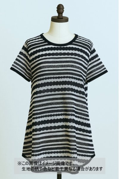生地:綿ナミナミ柄ボーダーニット(白地×ネイビー)