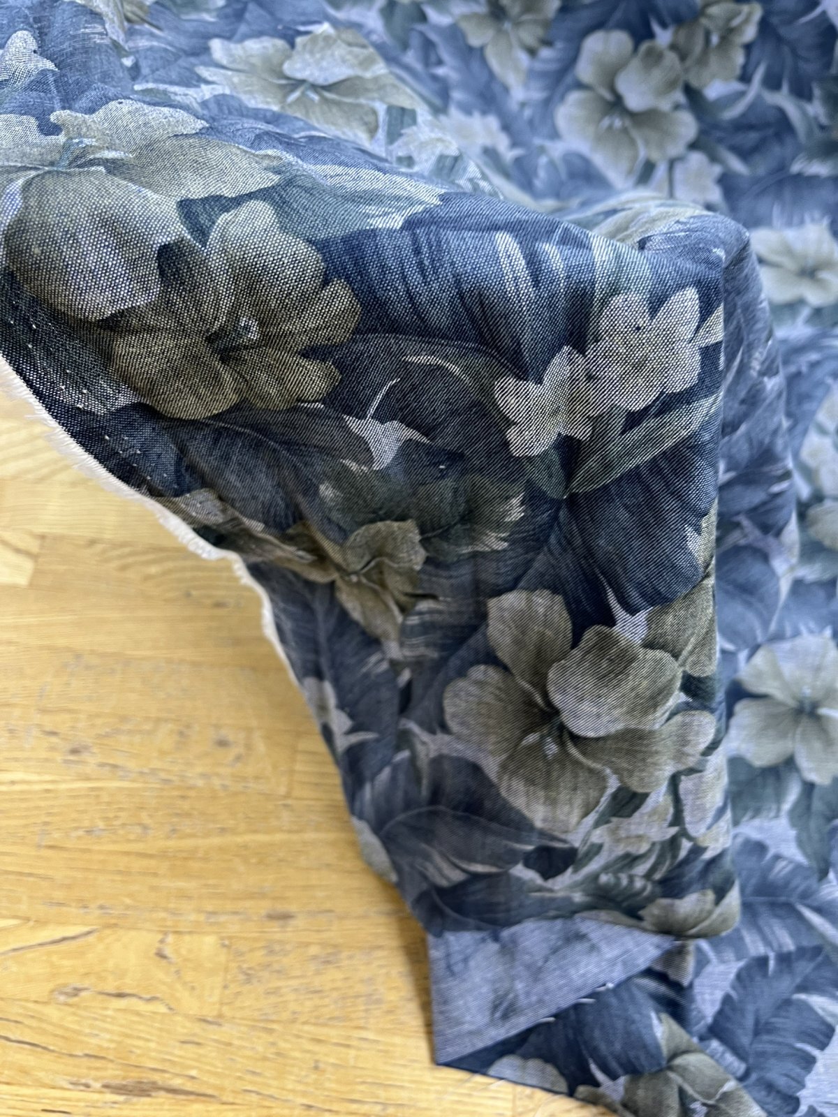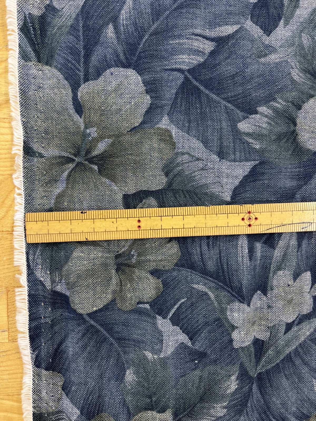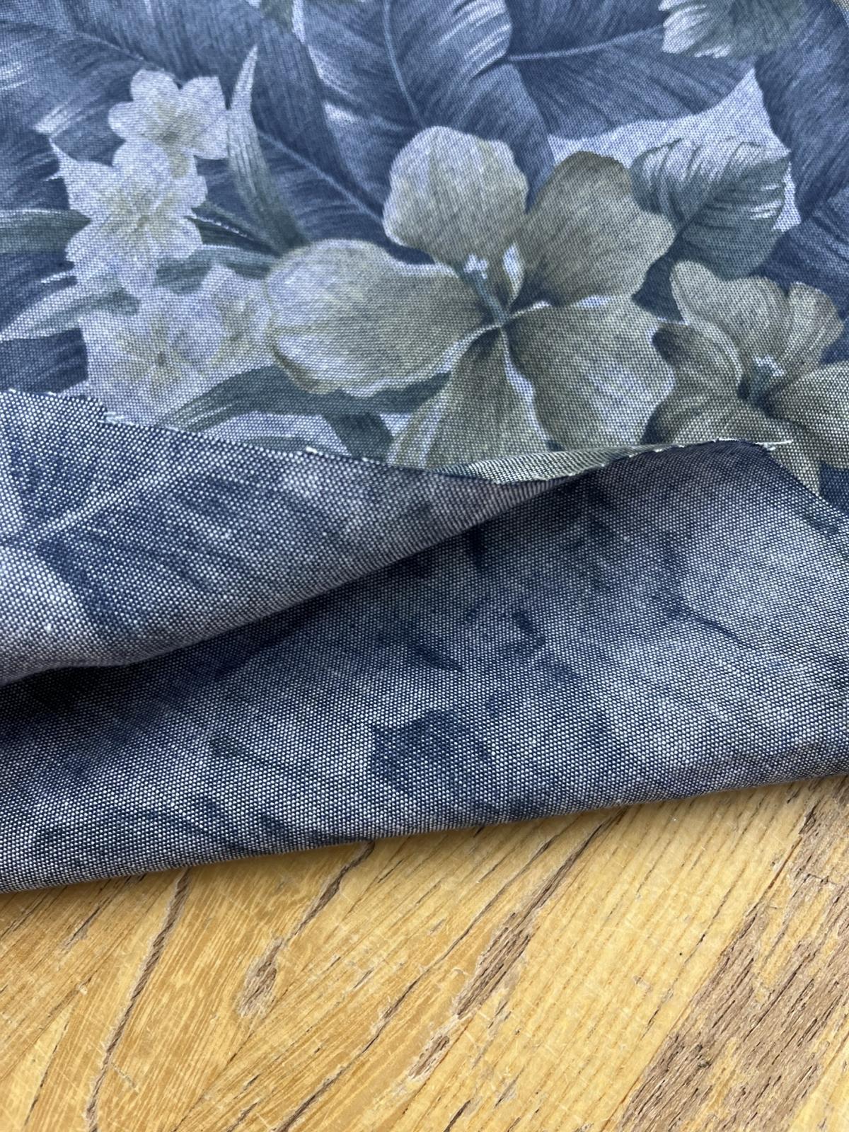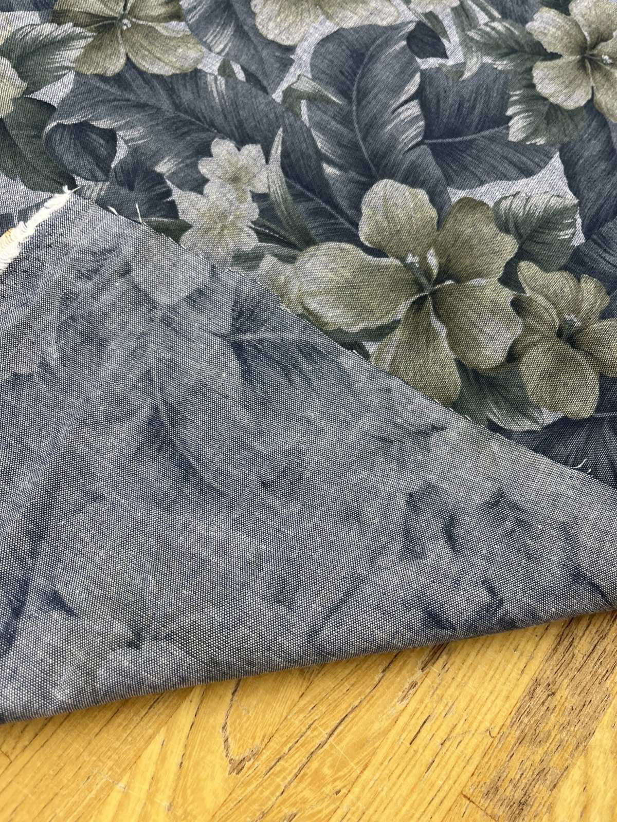 生地:ハイビスカス柄プリントデニム風コットン(デニムブルー)