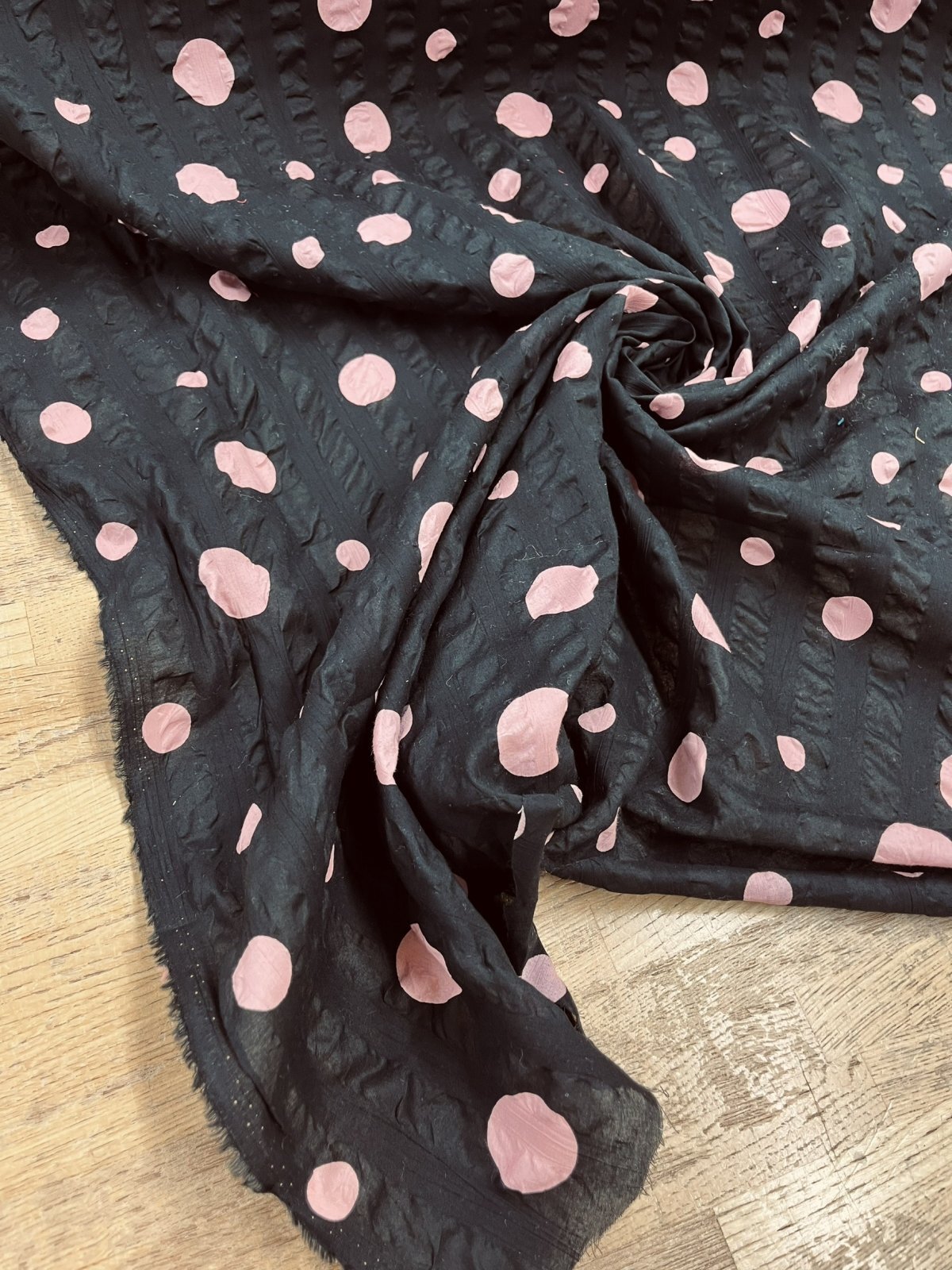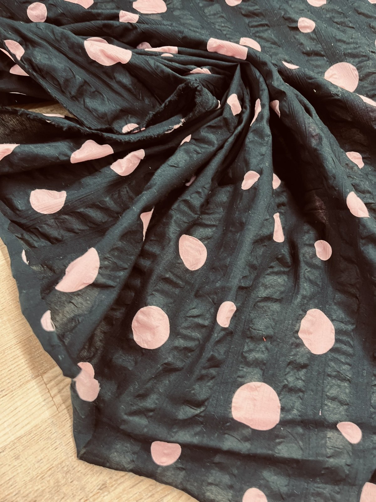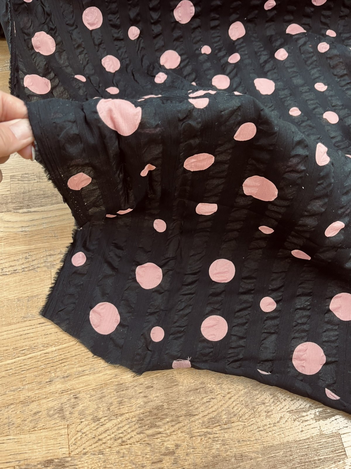 生地:綿ローンミラクルウェーブ ランダムドット(黒/ピンク)