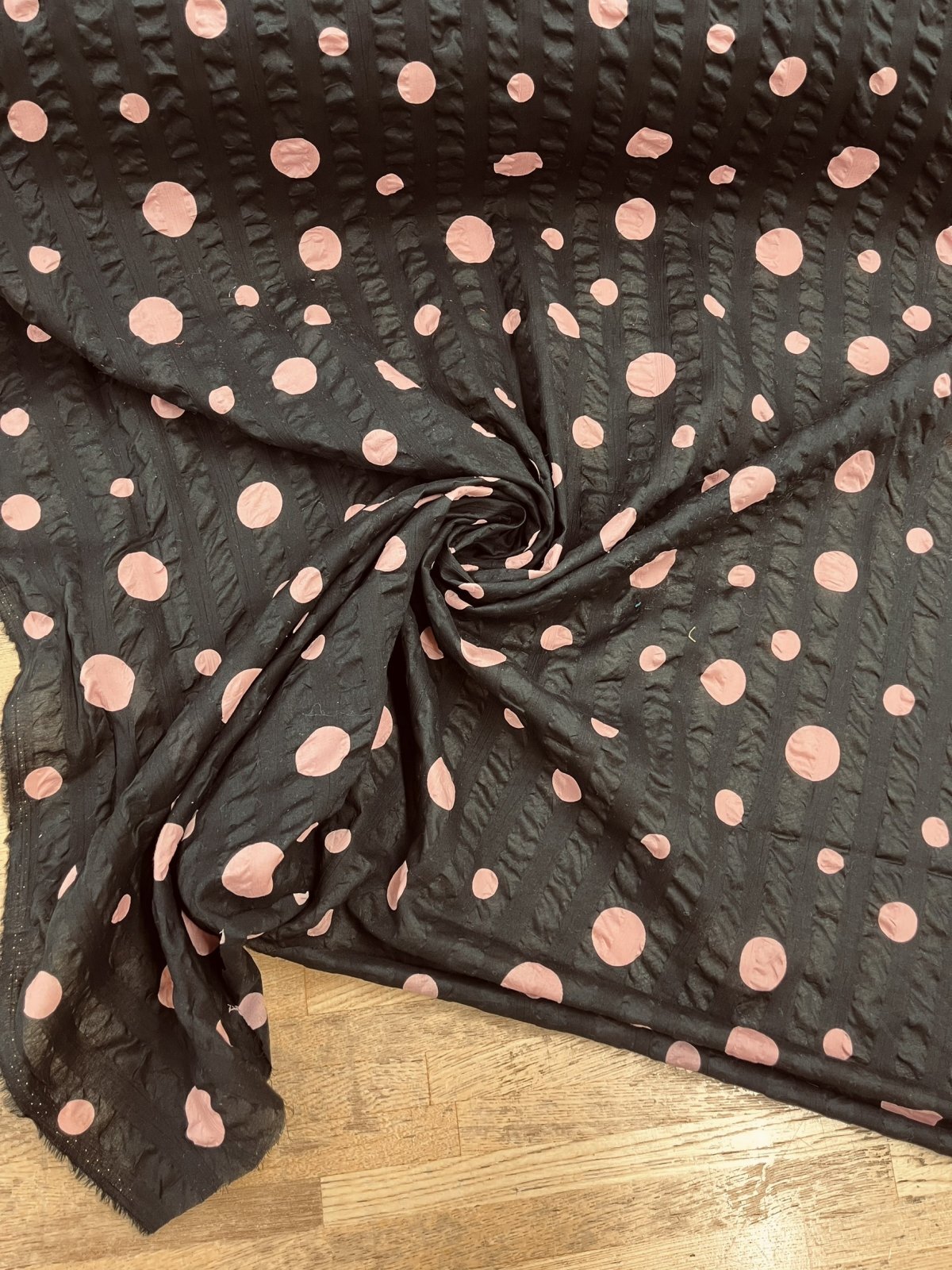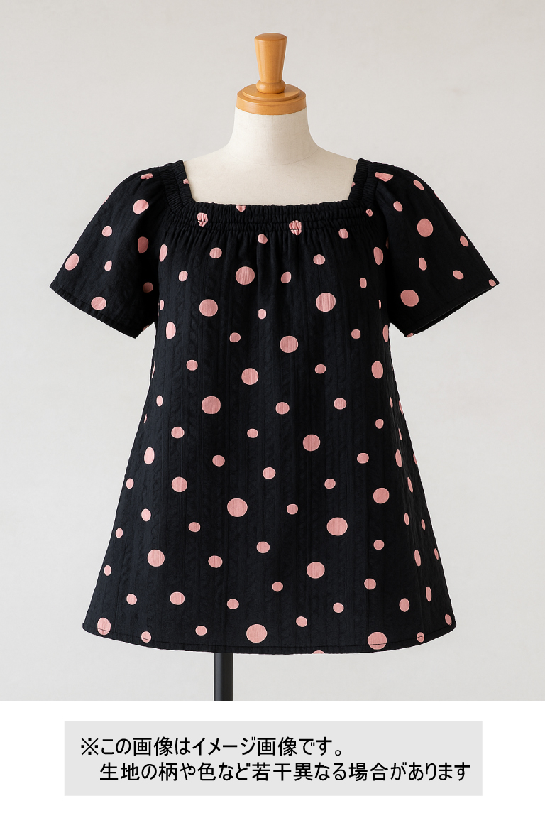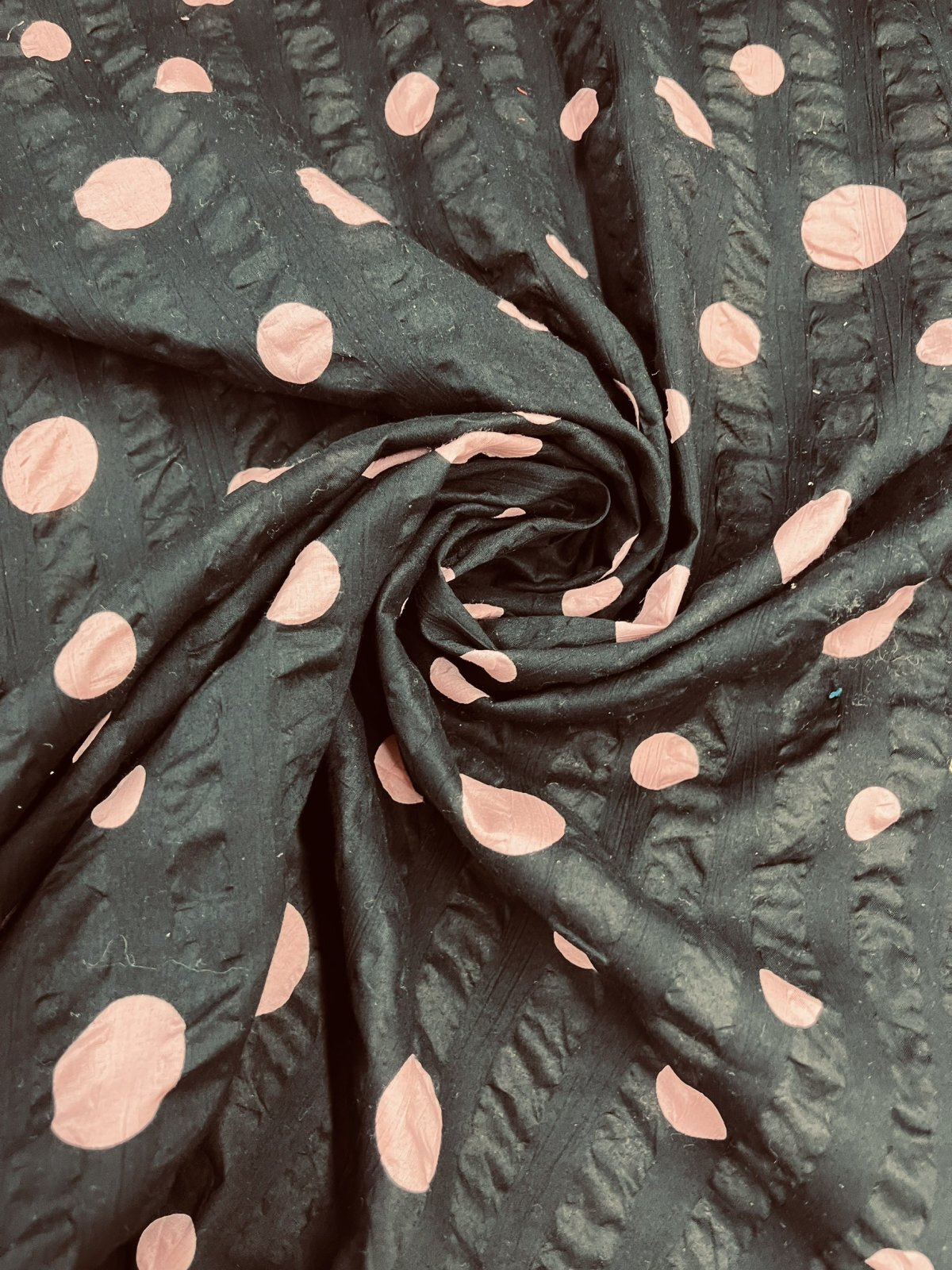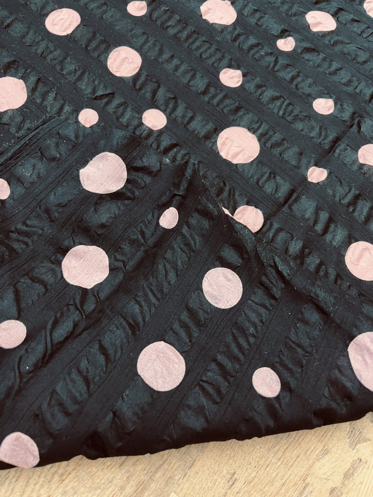 生地:綿ローンミラクルウェーブ ランダムドット(黒/ピンク)