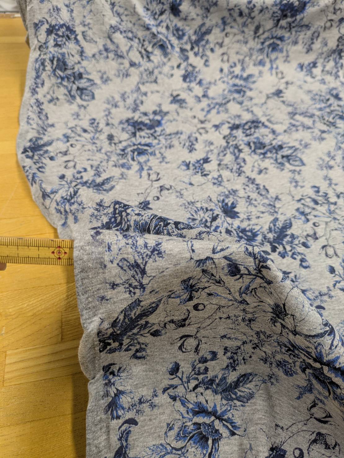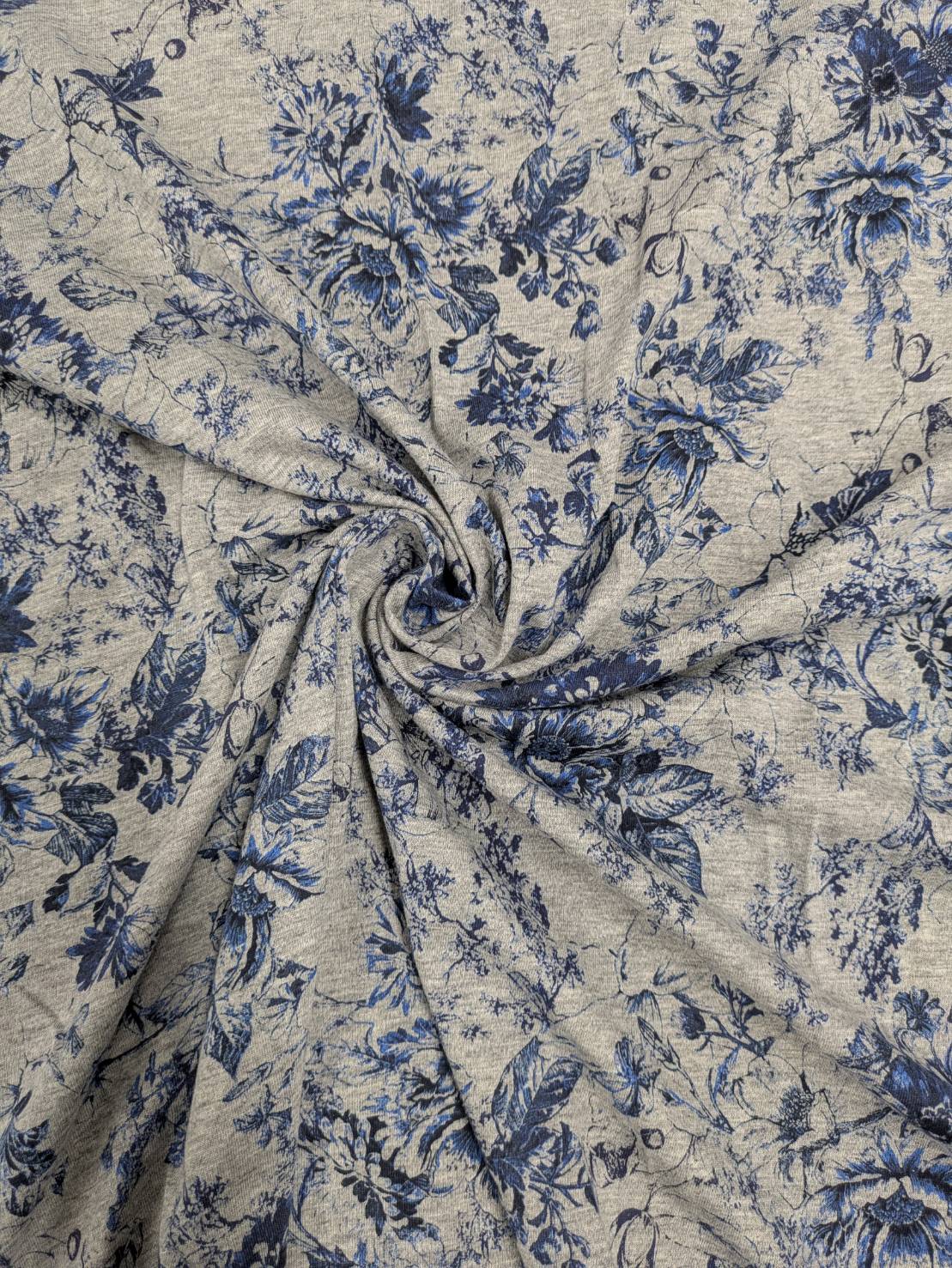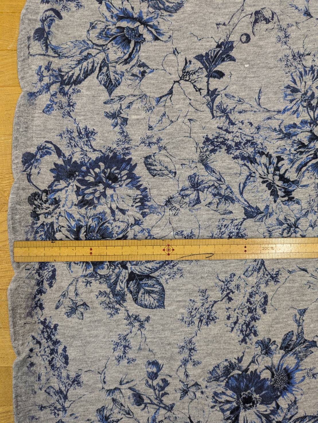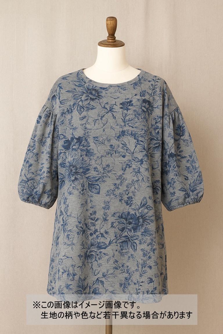 生地:コットン天竺フラワープリント(グレー地/ブルー)
