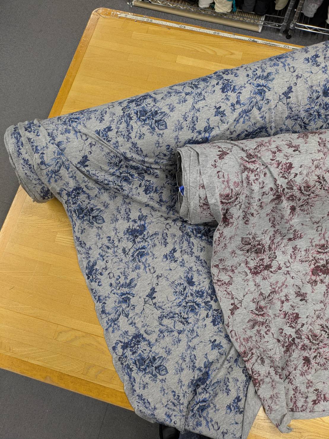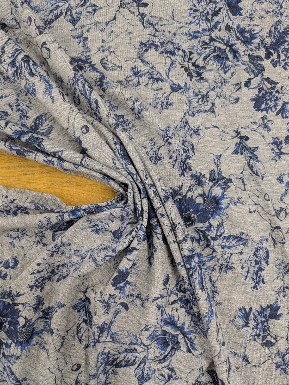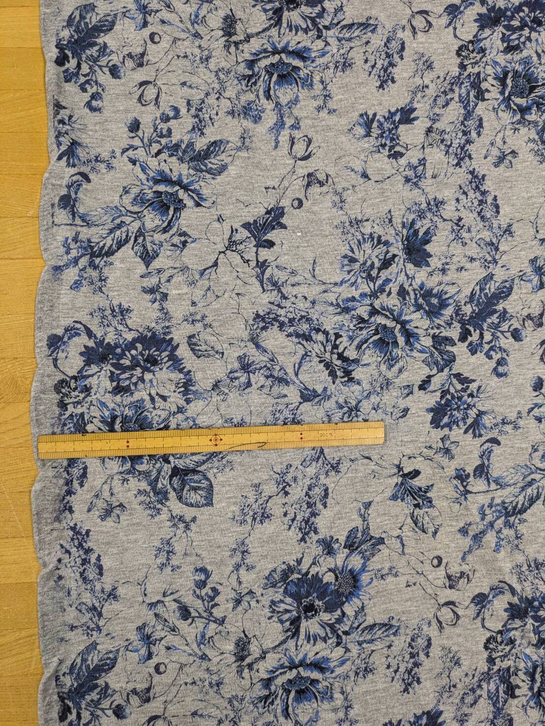 生地:コットン天竺フラワープリント(グレー地/ブルー)
