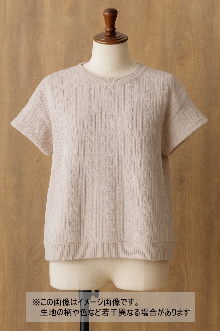 生地:ジャガード編み アランケーブル柄 ニット(くすみピンクベージュ)