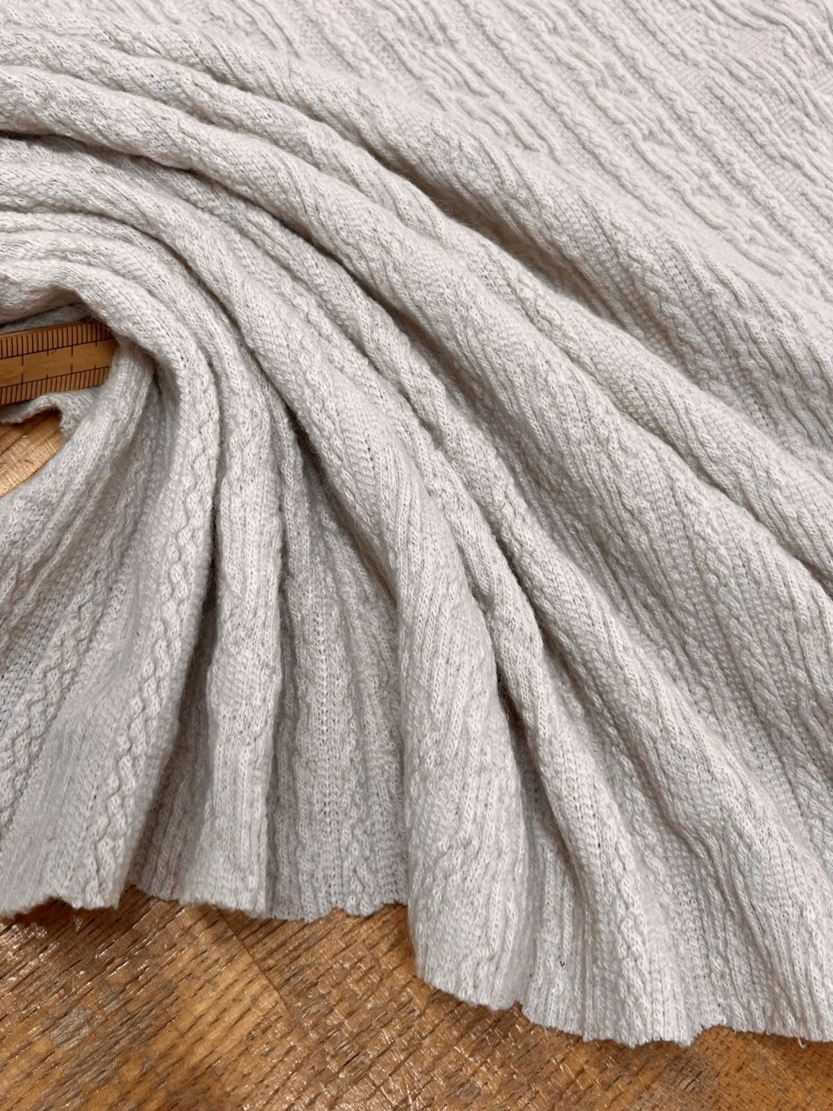 生地:ジャガード編み アランケーブル柄 ニット(くすみピンクベージュ) [kiji-3008]