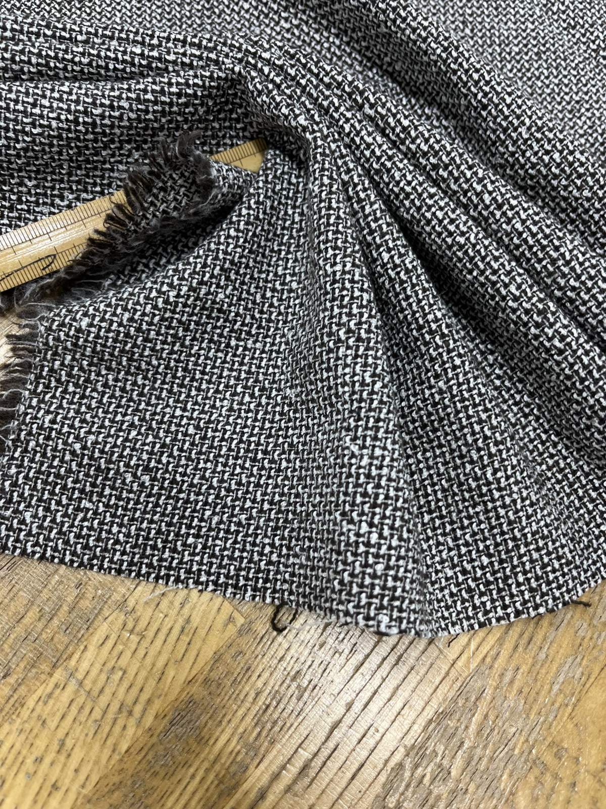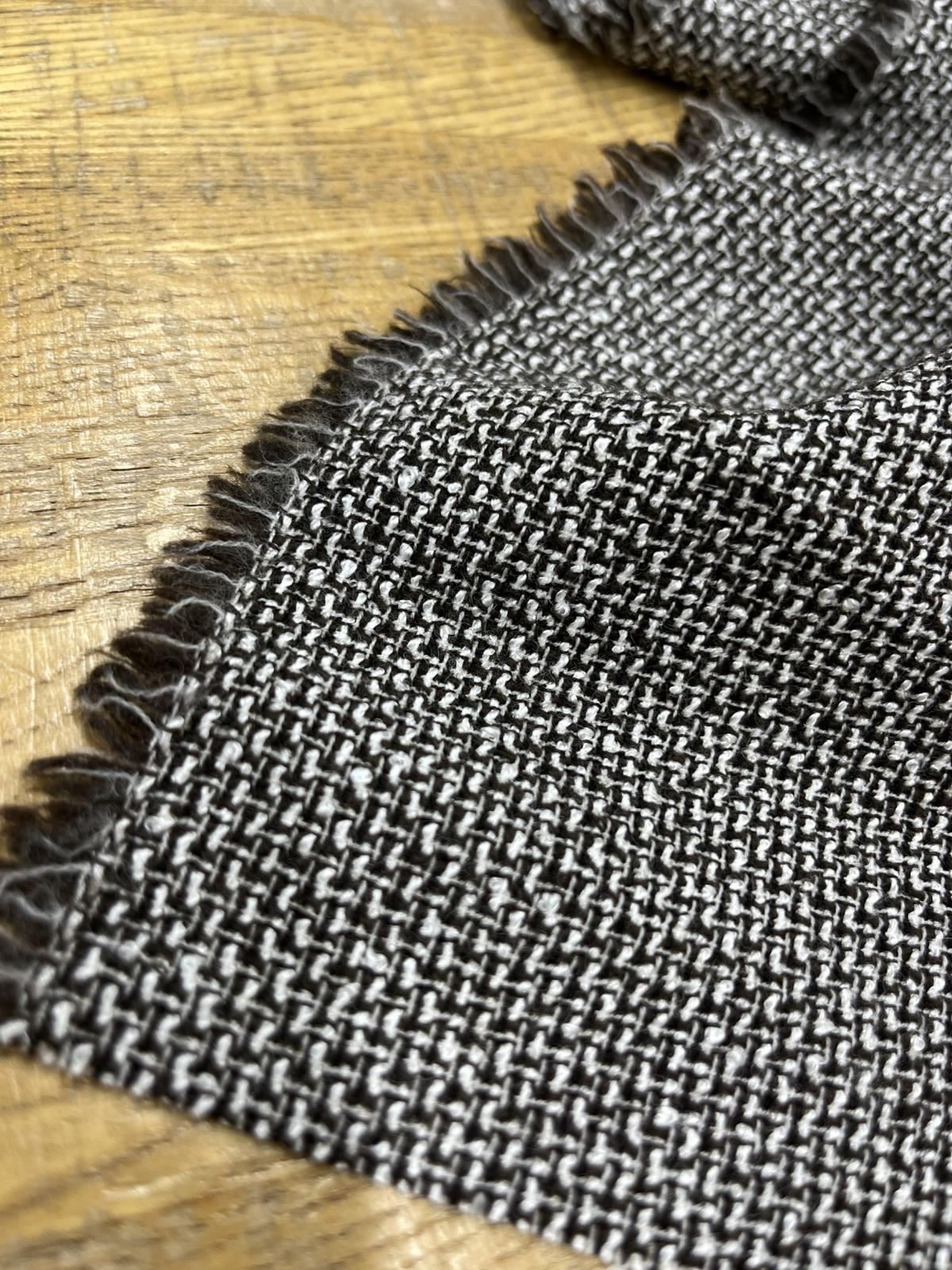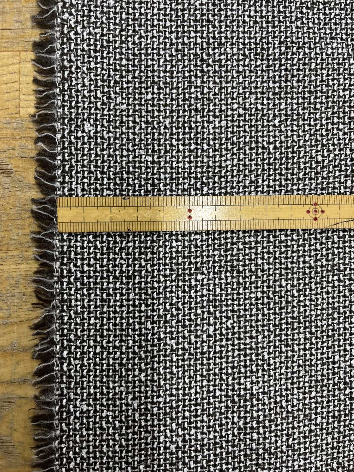 ゆるめに織られたこげ茶と白のコットンウールツイード生地。