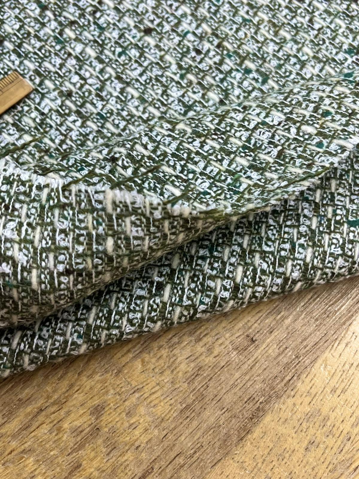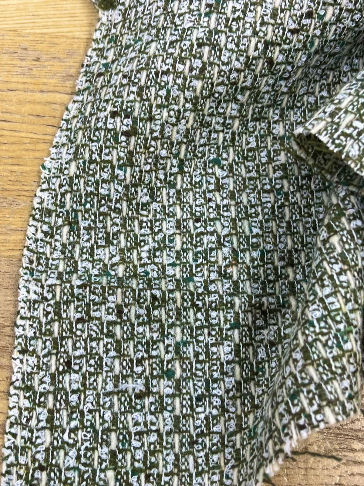 生地: ゆる編みファンシーツイード(深緑×白) [kiji-3074]