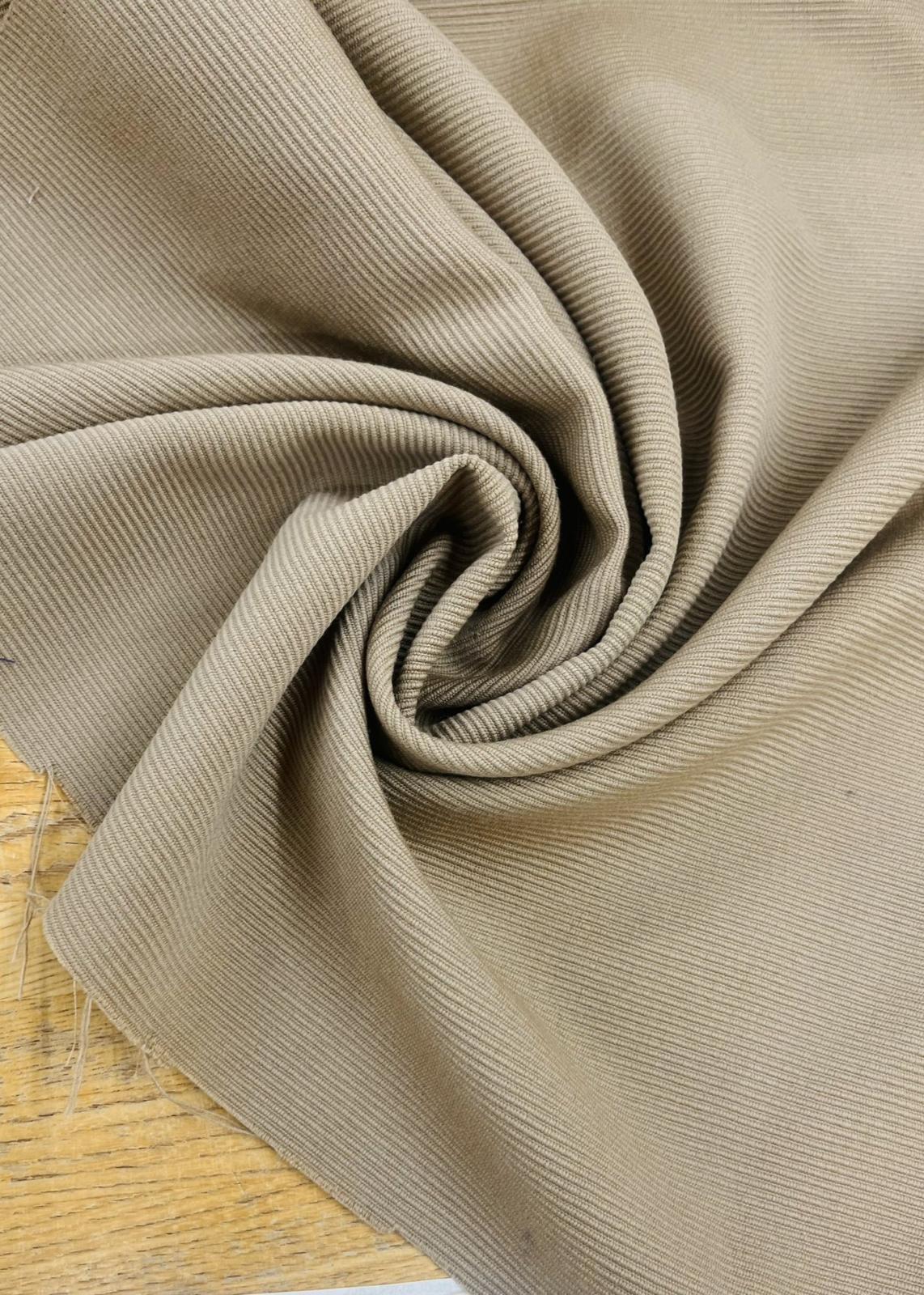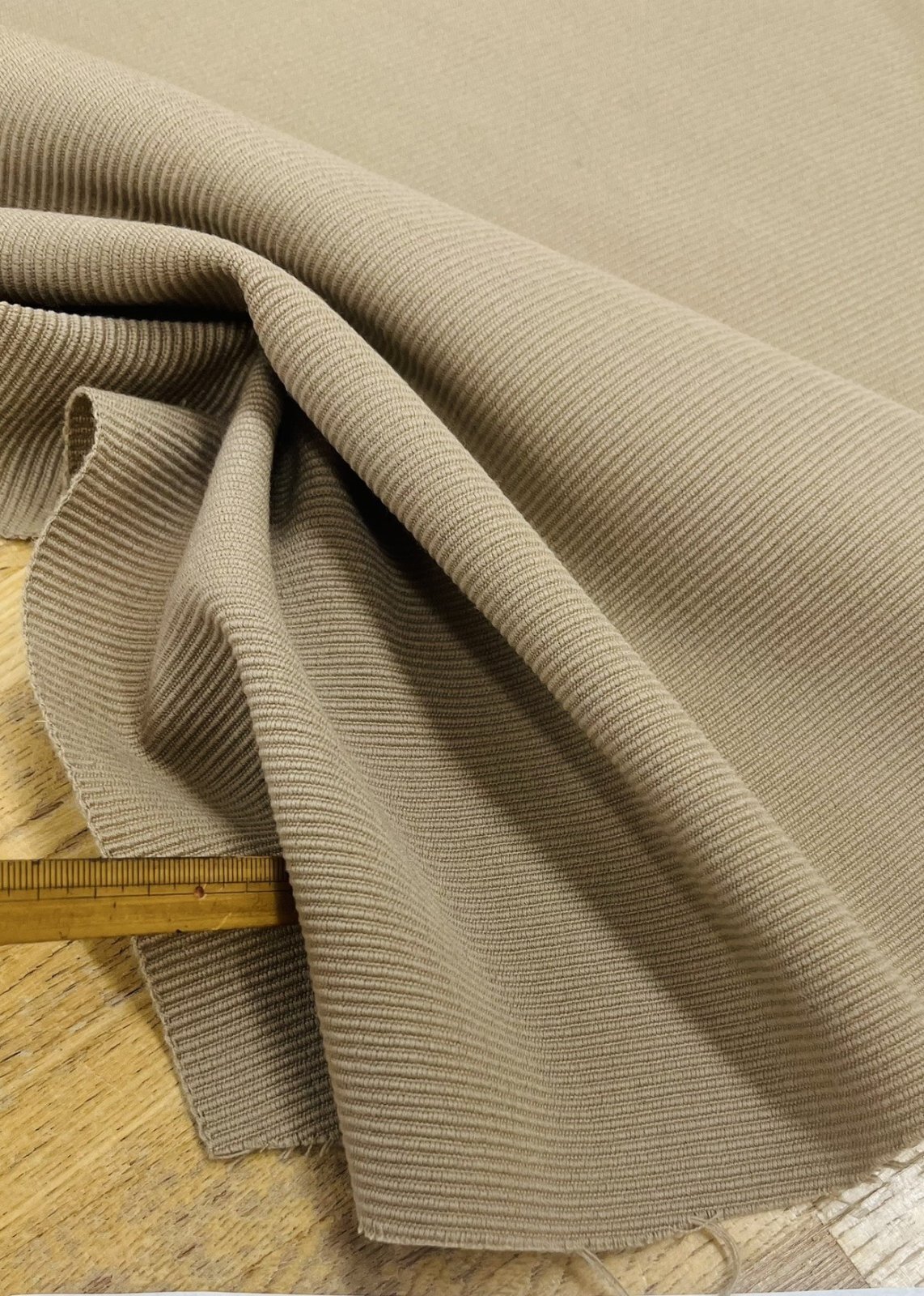 細やかな畝(うね)模様が入ったベージュのボーダー織りウール。