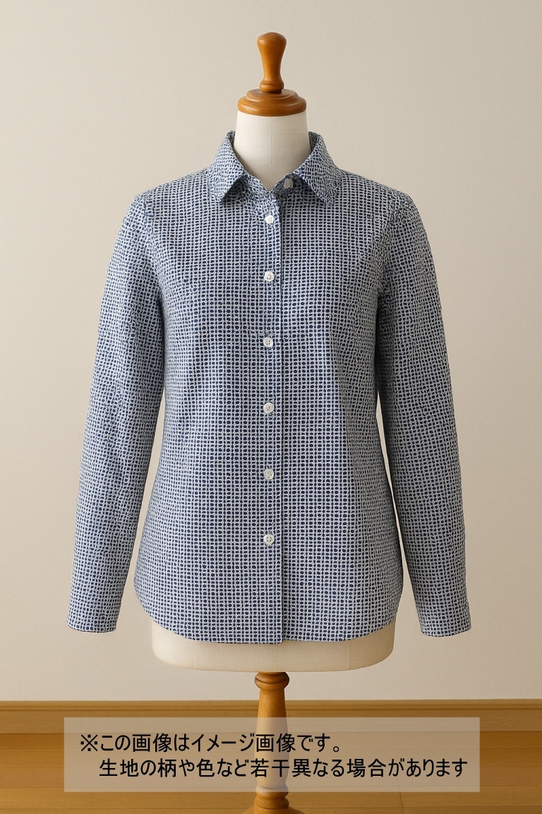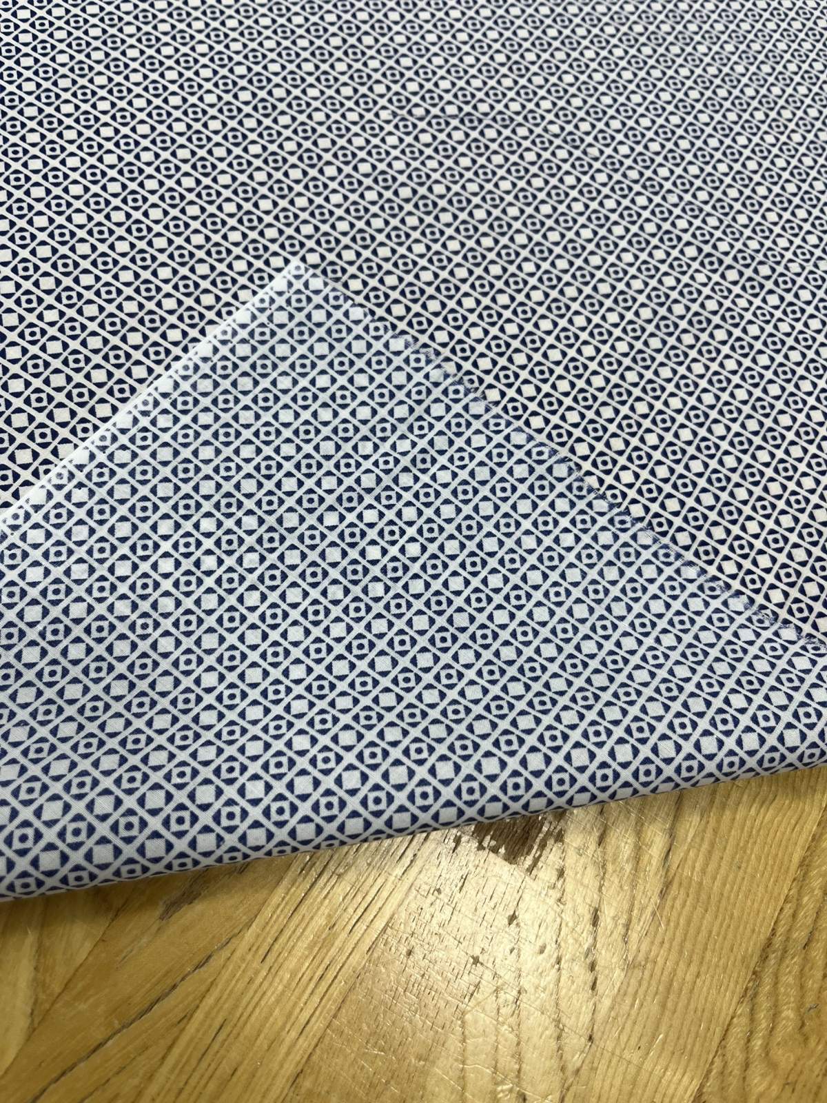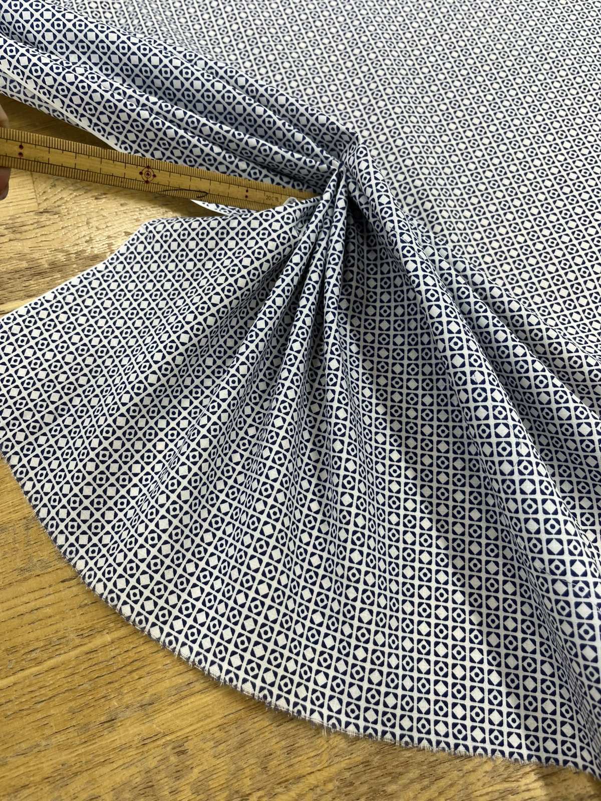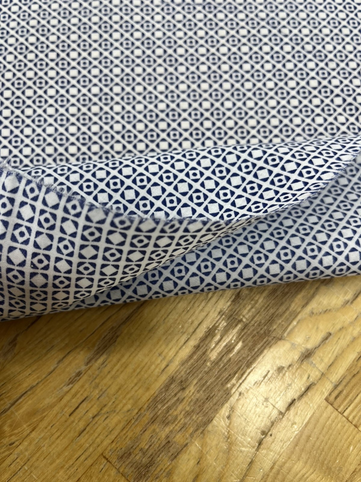 生地:綿60ローン幾何柄プリント(白地×紺)