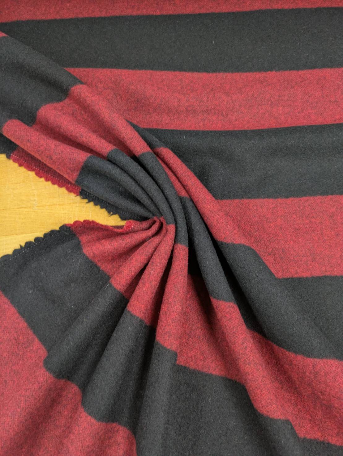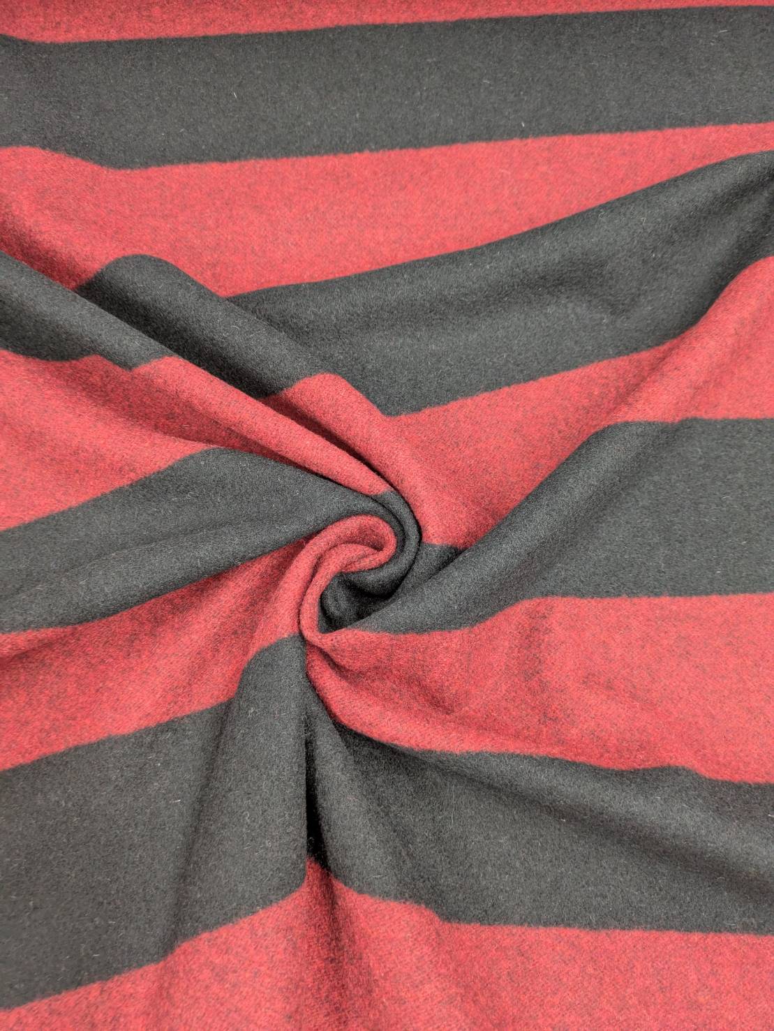 生地: ツイード太ボーダー柄ウール(赤/黒) [kiji-3079]