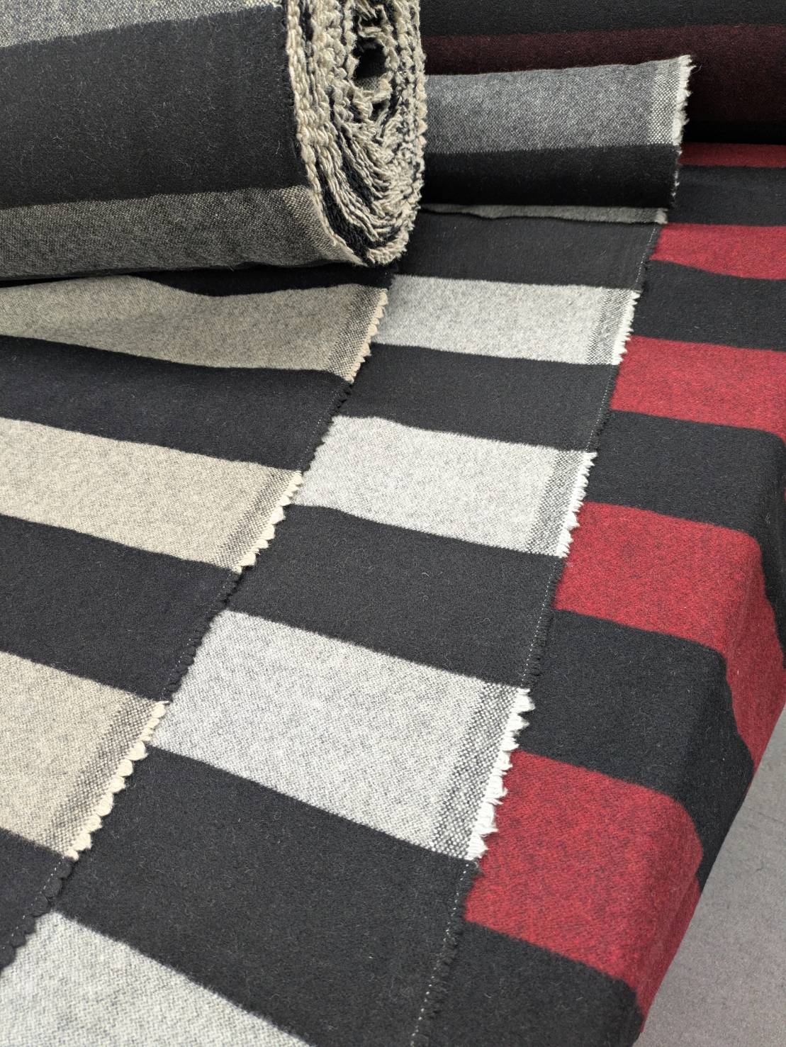 生地:ツイード太ボーダー柄ウール(赤/黒)